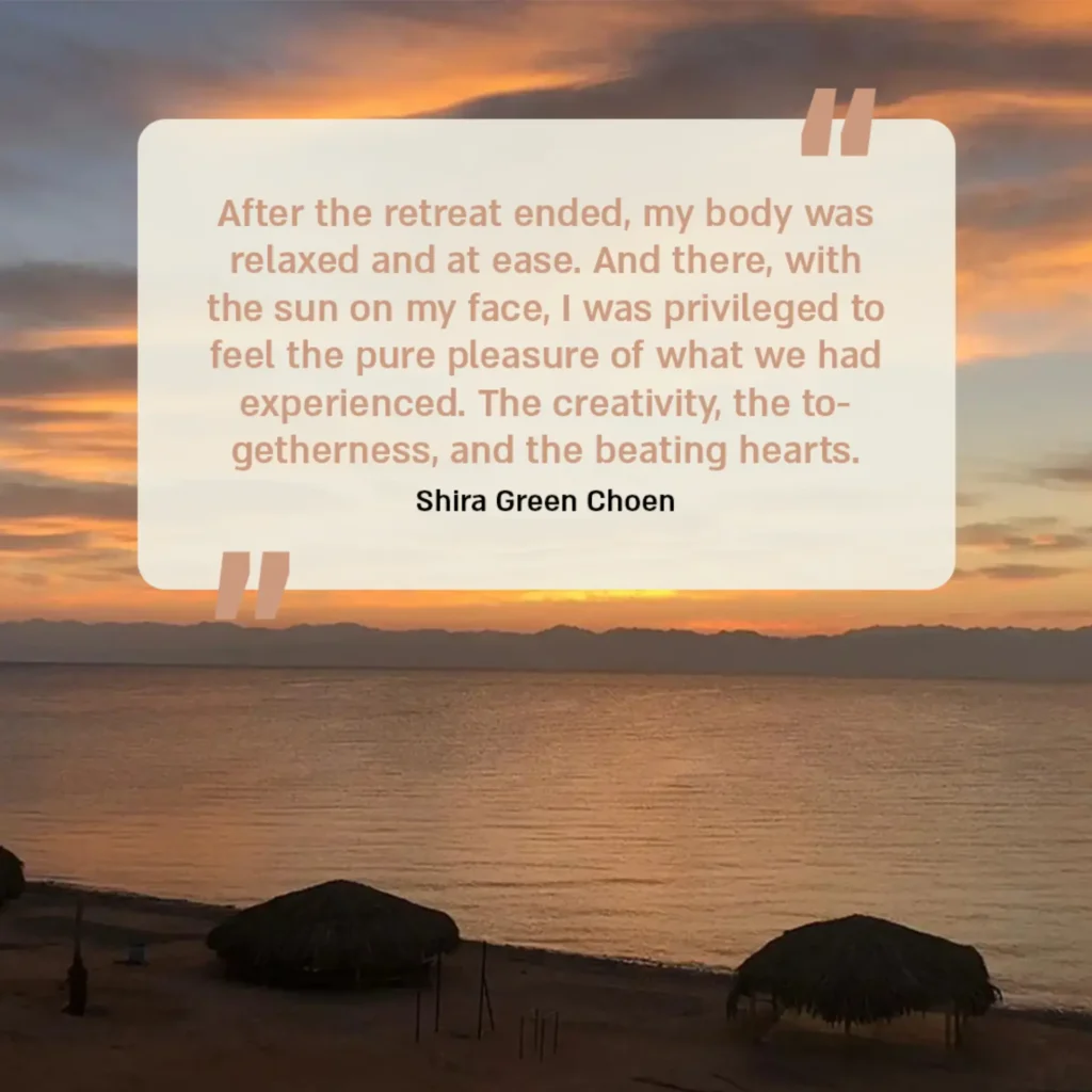 We will expand our capacity for presence, confidence, flexibility, and creative freedom, all while surrounded by the mesmerizing landscapes and the endless tranquility of Sinai.