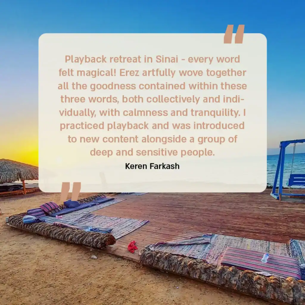 Three days of improv, playback theatre, music, and movement. Healing and rest for the body, the heart, and the mind. An opportunity to take a moment of respite and make space for yourself. We will practice practical tools from the worlds of playback, improvisation, and acting—tools for release, listening, and lightness within our daily routine.The upcoming retreat will be themed around Choice – together we will create, listen, sing, play, laugh, be moved, and above all – recharge ourselves.